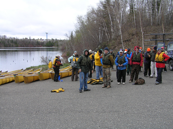 Pioneer Mine field trip preparing for departure in canoes onto Miner's Lake in Ely (photo courtesy Mark Jirsa) |